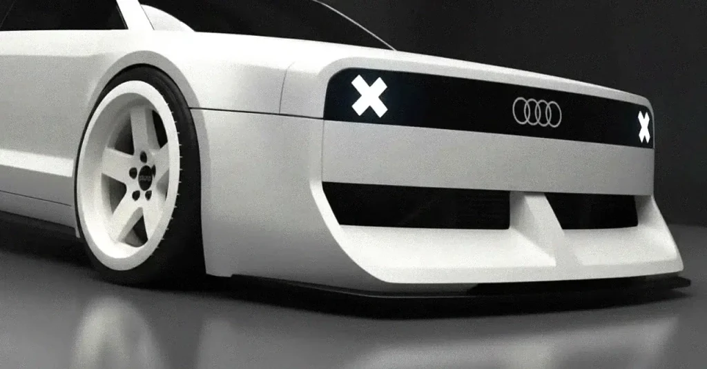 Every exterior panel has been redesigned, including bespoke bodywork and oversized wheels that give the concept an almost digital, game-like appearance. A standout detail is the use of the actual roof panel from an Audi 80, reinforcing the car’s historical connection to Audi’s touring car era.