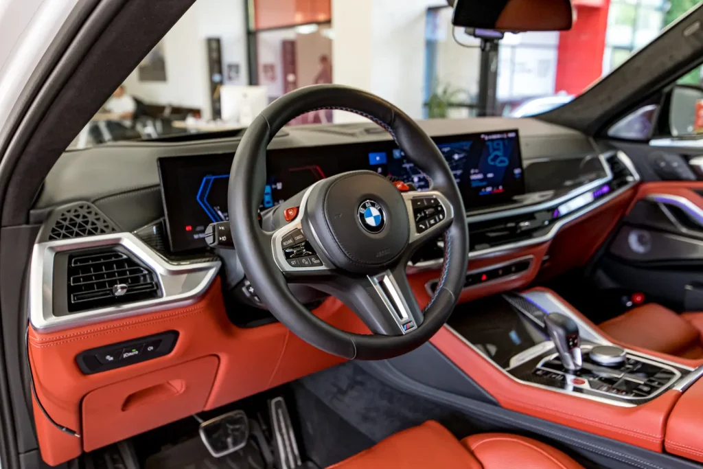 Step into the X6 and you’re welcomed by a plush, driver-focused cabin. Premium Vernasca or Merino leather wraps the seats, with open-pore wood, aluminium, or carbon inlays depending on trim. The centre console is anchored by the latest BMW Curved Display, blending a 12.3-inch digital instrument cluster with a 14.9-inch infotainment touchscreen, all running BMW’s slick OS 8.5. Key features include wireless Apple CarPlay and Android Auto, a 20-speaker Harman Kardon audio system, navigation with augmented reality, ambient lighting, wireless charging, and multi-zone climate control.