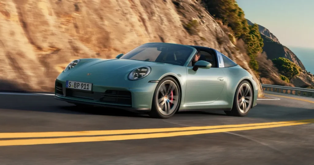 Mechanically identical to Carrera 4/4S AWD versions, the Targa adds the retro-modern fixed roll bar and power-retractable glass roof. 0–100 KM/H in 4.4 seconds (4), 3.8 seconds (4S), top speeds: 290 KM/H and 304 KM/H. Suspension is PASM with 10 MM lowered ride height, with steering and torque-vectoring similar to Carrera variants.